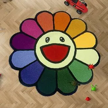 Lotus Atelier 30 in. Cartoon Sunflower Rug for Room | Smiley Face Maximalist Rugs for Bedroom | Hypebeast Rug | Preppy Decor
