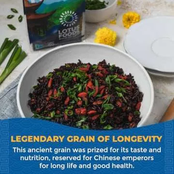 Show moreExperience the essence of ancient nourishment with Lotus Foods Heirloom Forbidden Rice, a premium black rice known for its deep purple hue and exceptional flavor. Hailing from the rich agricultural heritage of China’s Black Dragon River region, this unique rice variety is not just about looks; it's a nutritious powerhouse packed with antioxidants and fiber. With a delightful mild taste and perfect texture that resists mushiness, it's an excellent alternative to standard white or brown rice, adding both aesthetic appeal and a health-conscious edge to your meals.