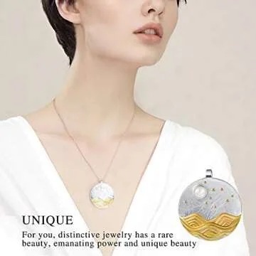 Lotus Fun S925 Sterling Silver Necklace Pendant Moonlight on the Sea Pendant with Link Chain length 17inches, Handmade Jewelry Gifts for Women (Silver)