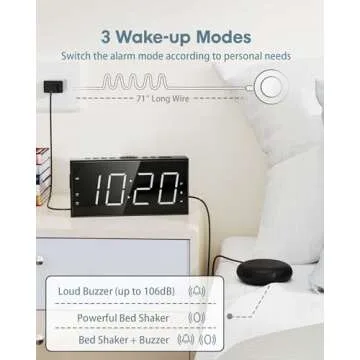 Loud Alarm Clock with Bed Shaker for Heavy Sleeper, Dual Vibrating Alarm Clock with USB Charger for Hearing-impaired Deaf, 7.5โโ Large LED Display with Dimmer, Snooze, 12/24H & Battery Backup