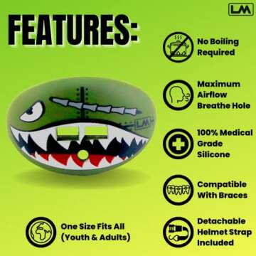 Loudmouth Football Mouth Guard | Military Flying Tiger Adult and Youth Mouth Guard | High Impact Mouth Piece for Sports | Dual Action Air Flow Mouth Guards | Pacifier Lip and Teeth Protector (Green)