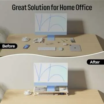 loukin Monitor Stand Riser for Desk, 22.4" x 8.3" Larger Computer Stand for Laptop, PC, Printer, Sturdy Desktop Computer Shelf with Non-Skid Rubber, Home Office, Natural Wood