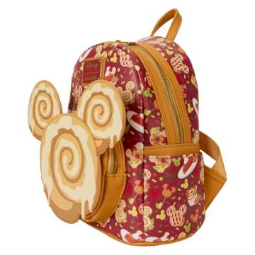 Featuring incredible detail to bring Fall Sweet Treats to life, this Loungefly mini-backpack is made of vegan leather (polyurethane), has a front zipper compartment, side pockets, and adjustable back straps.