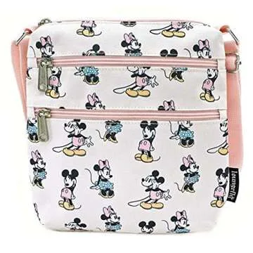 Bring the Disney magic on every adventure! This Passport Bag/Crossbody Purse is a fun all-over print feature classic Mickey Mouse and Minnie Mouse in soft pastel colors.