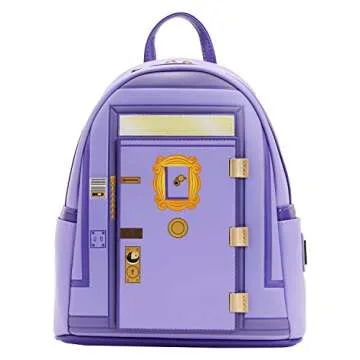 Step into the world of nostalgia with the Loungefly Friends TV Series Front Door Chibi Art Womens Double Strap Shoulder Bag Purse, an officially licensed bag that beautifully captures the essence of the beloved TV show, *Friends*. This stylish accessory combines functionality with a playful design, featuring a chic faux leather exterior adorned with intricate applique, debossed elements, charming metal rivets, and vibrant printed details. The adjustable shoulder straps and top carry handle...