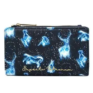 Step into the enchanted world of Harry Potter with the stunning Loungefly Harry Potter Expecto Patronus All Over Print Faux Leather Wallet. This officially licensed wallet combines fashion with function, featuring a beautifully crafted faux leather exterior adorned with embroidered and printed details that showcase the powerful Expecto Patronus spell. Perfectly sized for everyday use, measuring 6" x 3.4" x 1", it seamlessly slips into any handbag or jacket pocket while providing ample storage...
