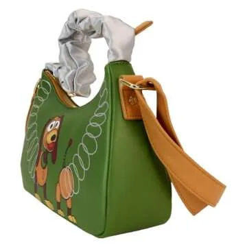 Featuring incredible detail to bring Slinky Dog to life, this Loungefly crossbody bag is made of vegan leather (polyurethane), long crossbody strap, and metal zipper enclosure.