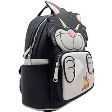 Show more Step into a world of whimsy and enchantment with the Loungefly X LASR Exclusive Disney Cinderella Lucifer Cosplay Mini Backpack. This stunning accessory not only pays homage to one of Disney’s most beloved characters, Lucifer the Cat, but also showcases a playful blend of style and functionality. Crafted from high-quality faux leather, this mini backpack features vibrant graphics and details that truly capture the essence of Cinderella’s mischievous feline companion. The design elegantly fuses cosplay charm with everyday practicality, making it an ideal choice for Disney fans of all ages. With dimensions of 9 inches wide, 12.5 inches high, and 4.5 inches deep, it’s the perfect size to carry your essentials while expressing your love for Disney! Less