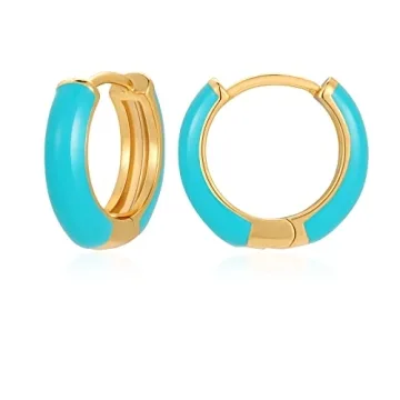 Show more Introducing the Lourny Small Hoop Earrings – a stunning accessory that perfectly embodies elegance and charm. These earrings are expertly crafted with a premium 18K gold plating, ensuring not only durability but also a brilliant shine that catches the eye. The unique enamel color enhances the design, offering a stylish touch that complements both casual and formal outfits. Weighing lightly, these hoop earrings are incredibly comfortable to wear and incredibly easy to put on and take off, making them an ideal choice for women on the go. You’ll appreciate the even and smooth texture of the enamel, which adds to their overall high-end appeal and sophistication.
