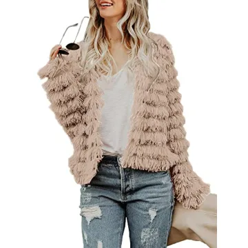 Lovaru Womens Coat Long Sleeve Open Front Parka Shaggy Faux Fur Coat Jacket Parka Coffee