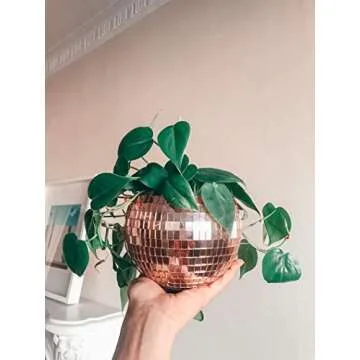 LOVE|EVERYDAY Disco Ball Planter Rose Gold, Hanging Disco Plant Hanger for Indoor Plants, Flowers & Gardening, Sparkly Mirrored Disco Ball Planter Decor