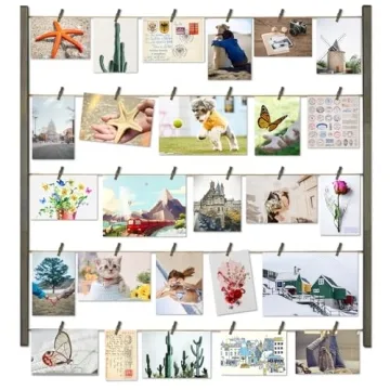 Show more Unleash your creativity with the Love-KANKEI Wood Picture Photo Frame, a stunning Multi Photo Display that redefines how you showcase memories! Crafted with an essence of rustic charm, this frame uniquely combines 30 vibrant clothespins, 6 sturdy wooden pieces, and 5 twine cords offering a delightful way to exhibit your treasured moments. At an ideal size of 26×29 inches, it promises to transform any space into a lively gallery while being compact enough to fit into smaller areas seamlessly.