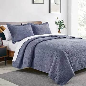 Love's cabin Quilts for Queen Bed Blue Bedspreads - Soft Bed Summer Quilt Lightweight Microfiber Bedspread- Modern Style Coin Pattern Coverlet for All Season - 3 Piece (1 Quilt, 2 Pillow Shams)
