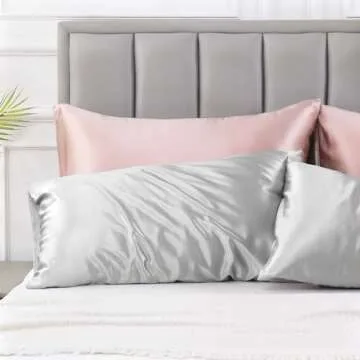 Love's cabin Satin Pillowcase for Hair and Skin (Light Grey, 20x40 inches) Similar to Silk Pillow Cases, King Size Pillow Cases Set of 2 - Satin Cooling Pillow Covers with Envelope Closure