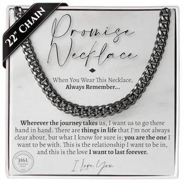 Indulge in expressing your love with the Promise Necklace for Boyfriend, a stunning piece introduced by an elevated brand dedicated to offering quality and sentimental gifts. This classic cuban link necklace is not just an accessory; it represents the bond between you and your partner, combining style and meaning effortlessly. Crafted from surgical stainless steel, this necklace is designed to endure daily wear while maintaining its lustrous appeal. Measuring a comfortable '22' in length with an '8mm' width, it...
