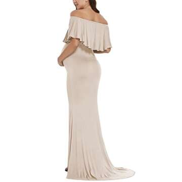Love2Mi Womens Off Shoulder Maternity Dress for Photoshoot Mama Ruffles Photography Dress Slim Fitted Gown for Baby Shower Champagne