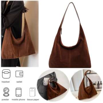 Lovehomily Suede Shoulder Hobo Bag - Brown PU Leather Large Underarm Slouchy Travel Bag