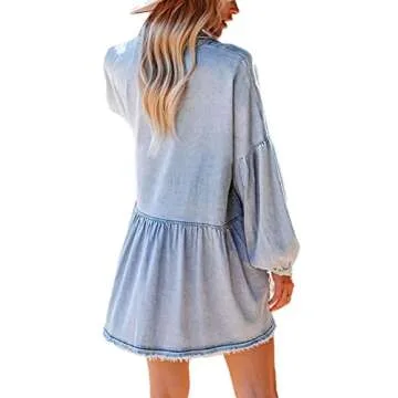 loveimgs Women's Oversized Distressed Denim Button Down Tunic Shirt Dress with Pockets (Medium,Light Blue)
