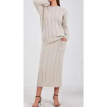 loveimgs Women's Trendy Chunky Cable Knit Long Skirt 2 Piece Outfit Sweater Sets (XX-Large, Apricot)