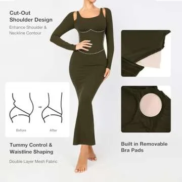 Lover-Beauty Long Sleeve Dress for Women Cut Out Off Shoulder Maxi Bodycon Dress Built in Bra Formal Wedding Guest Dress