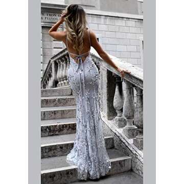 Lover Kiss Light Sky Blue Long Sexy Mermaid Formal Prom Dresses V-Neck Open Back Sequin Evening Party Gown, 4