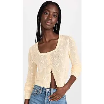 LOVESHACKFANCY Women's Venice Crop Cardigan - Stylish and Chic Knitted Top