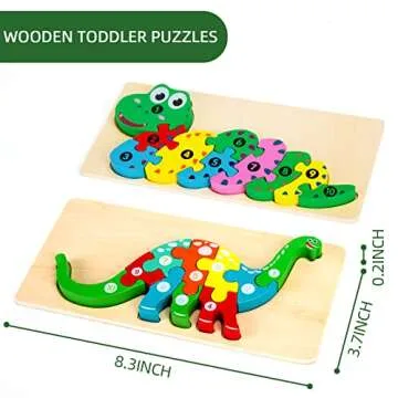 LOVESTOWN Wooden Toddler Puzzles, 2PCS Animal Puzzles Montessori Toys Small Snake Dinosaur Jigsaws for Kids Ages 3 4 5 6