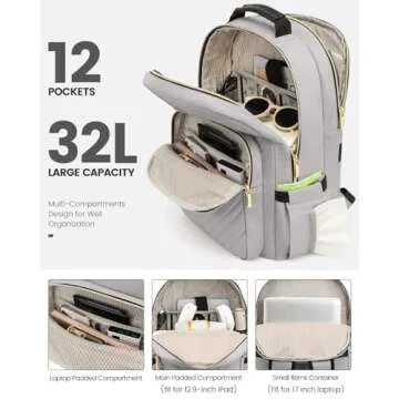 LOVEVOOK Laptop Backpack for Women, Travel Computer Work Bags with 17-inch Laptop Compartment, College School Student Bag Teen Backpacks For Girls, Outdoor Carry On Backpack Purse, Grey