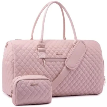 Show moreIntroducing the LOVEVOOK Travel Duffle Bag, your new travel companion that combines elegance and practicality in perfect harmony. Designed for the discerning modern woman, this weekender bag stands out with its stylish aesthetic and extensive functionality. Crafted with premium materials, it not only exudes luxury but is built to endure the rigors of travel. With a weight of just 2.6 lbs and dimensions of 21 x 8 x 13 inches, it easily meets international carry-on standards, making it the ideal choice for air travel. Featuring a dedicated shoe compartment, you can keep your belongings organized without the worry of dirty shoes contaminating your clean clothes.