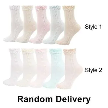 Lovful Womens Ruffle Trim Elastic Casual Socks, Cute Cotton Crew Frilly Socks, Thin Soft Dress Socks 5 Pairs, Multicolored