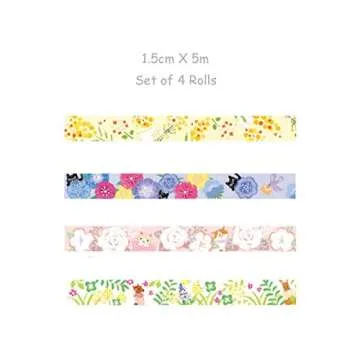 lovielf Gold foil Silver Animal Dove Black cat Bunny Floral Flower Cute Washi Tape | Set of 4 Rolls