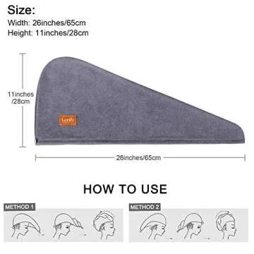 Show more Introducing the Lovife 2 Pack Microfiber Hair Towel Wrap, your ultimate solution for quick-drying, super absorbent hair care! Measuring an ideal 11 inches x 26 inches each, these towels are perfectly sized for all hair types, especially long and curly hair. Designed with versatility in mind, this convenient 2-piece set makes it easy to share with family or have a backup handy whenever you need it. Made from advanced microfiber material, these towels absorb up to 500ml of water in just 10 seconds, significantly reducing drying time while protecting your beautiful locks from heat damage caused by blow dryers. Utilize them not just for hair drying, but also as a soft companion for your makeup, bath time, or gym sessions.
