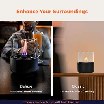 LOVINFLAME Passion Glass Candle Portable Tabletop Fire Pit Gift Patio Warmer Fireplace Indoor Home Décor Smokeless, ONLY Used with Lovinflame Ethanol-Free Fuel (Deluxe)
