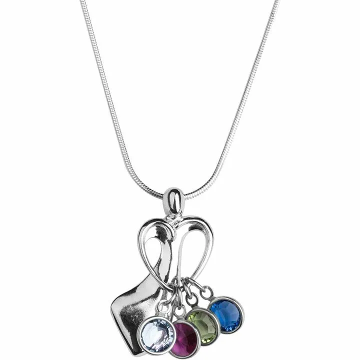 Loving Family Personalized Sterling Silver Pendant Necklace with Birthstone Crystals
