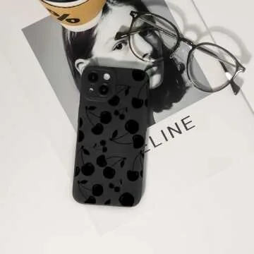 Lovmooful Compatible for iPhone 14 Case Cute Cool Cherry Black Design for Girls Women Soft TPU Shockproof Protective Girly for iPhone 14-Cherry