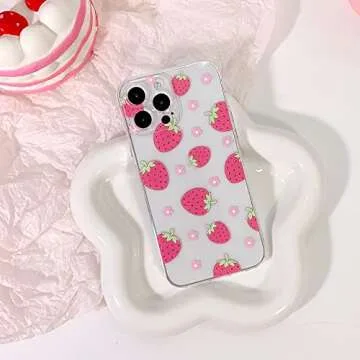 Lovmooful Compatible for iPhone 15 Pro Max Case Cute Clear Oil Flower Floral Strawberry Design for Girls Women Soft TPU Shockproof Protective Girly for iPhone 15 Pro Max-Red Strawberry