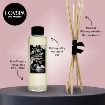 LOVSPA Santal Sandalwood Reed Diffuser Oil Refill with Replacement Scent Sticks | A Warm, Earthy & Woody Aroma, 4oz | Made in The USA