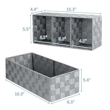 Show more Discover the beauty of organization with the LOVSTORAGE Storage Baskets – a versatile 8-pack collection that transforms your space. Made with care, these woven baskets come in an aesthetic grey tone and additional sizes, offering a smart solution for clustering your belongings. Each basket features a durable steel frame wrapped in high-quality polypropylene ribbons that provide both strength and style, ensuring that they remain a functional yet attractive addition to your home.