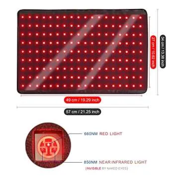Introducing the LOVTRAVEL Red Light Therapy Device, uniquely designed to offer effective pain relief and rejuvenation through cutting-edge technology. Measuring an impressive 21" x 13", it features a powerful array of 630 pcs medical-grade red and infrared lights that penetrate deep into tissues—providing a comprehensive treatment experience. The combination of 660 nm red light and 850 nm near-infrared light is optimized...