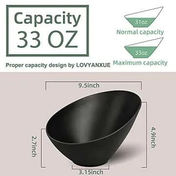 The unique slanted shape of the bowls, with a front height of 4.9 inches and a rear height of 2.7 inches, allows for optimal visibility and easier access to your delectable dishes. With a bottom width of 3.15 inches and an impressive top width of 9.5 inches, these bowls offer ample space for salads, pastas, soups, and more, catering to all your serving needs!