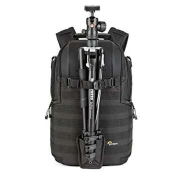 The interior boasts flexible and adaptive dividers that allow for seamless reconfiguration, enabling you to customize the layout to fit your specific camera gear, be it DSLRs, mirrorless systems, or drones like the DJI Mavic. The backpack also integrates modular capabilities with two quick lock straps and a slip lock tripod cup, providing added utility for mounting tripods and securing extra accessories effortlessly.