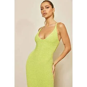 Show moreIntroducing the LOXODONTA Women's Deep Scoop V Neck Spaghetti Strap Sleeveless Fitted Cami Midi Dress, a piece that truly encapsulates chic elegance combined with comfort. Crafted from a luxurious, breathable fabric, this dress features a flattering deep scoop neckline and delicate spaghetti straps, making it perfect for showing off your shoulders and collarbone. The chunky ribbed knit adds texture and character, while the body-hugging fit ensures that you look stunning, no matter the occasion. Whether you're dressing it up with heels or going for a casual look with sandals, this midi dress is versatile enough to suit your style.