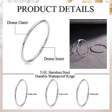 Show moreIntroducing the LOYALLOOK 3pcs 1mm Stainless Steel Women's Plain Band Knuckle Stacking Midi Rings, the perfect blend of elegance, comfort, and durability. Crafted from high-quality stainless steel, these rings not only boast a stylish silver tone but also offer allergy-free wear, making them suitable for even the most sensitive skin. With their hypoallergenic and rust-resistant properties, you can indulge in wearing these rings in any environment, whether you're washing your hands or enjoying a day at the beach. Designed for versatility, these 1mm bands are lightweight and can be stacked, worn separately, or matched with your other favorite pieces, allowing for a myriad of fashionable combinations.