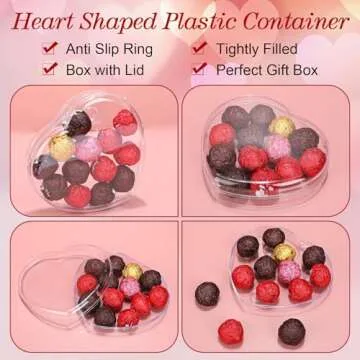 Show moreCelebrate love and affection with the LOYIM 4 Pcs Mother's Day Heart Shaped Plastic Containers. These delightful, clear storage boxes are perfect for storing and presenting everything from chocolates and candies to small jewelry items or desserts. Measuring at a charming 5.9" W x 1.6" H, these heart-shaped containers are generously sized to hold your favorite treats while adding an element of charm to any occasion. Their elegant yet simple design makes them a versatile choice for various celebrations, ensuring your gifts are presented beautifully.