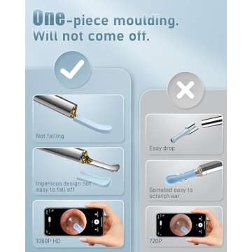 Loyker Ear Wax Removal Tool Camera, Ear Cleaner with 1080P Camera, Earwax Removal Cleaning Kit with 6 Ear Pick, Otoscope for iPhone, iPad, Android Phones, Gray