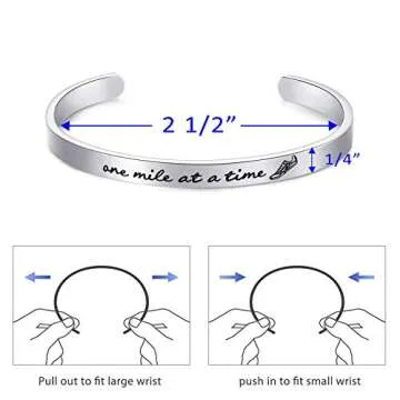 LParkin Marathon Runners Gifts Bracelet Running Jewelry Men Women One Mile At A Time Bracelet 1/4” x 6" Stainless Steel Polished Finish