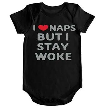 LPM I Love naps but i stay woke Onesie Unisex Funny Romper Onesie Creeper (3-6months, Black)