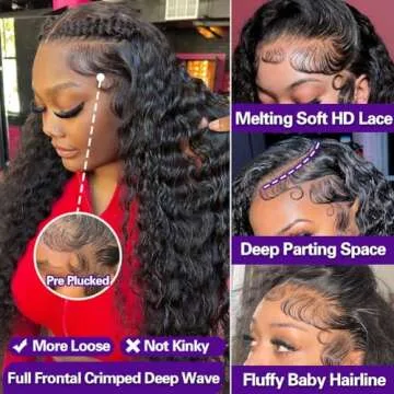 LRV 26 Inch Deep Wave Lace Front Wigs Human Hair, 13x4 HD Curly Lace Front Human Hair Wet Wavy Waterwave Glueless Frontal Deep Wave Wig for Women, Pre Plucked, 180 Density, Average Cap, Tangle Free