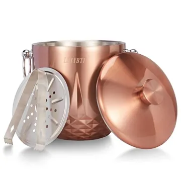 LRYYBTI Double Wall Stainless Steel Insulated Ice Bucket - 3L Capacity, Copper Finish