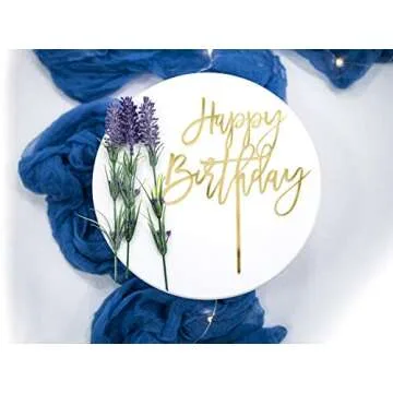 LS Designs Happy Birthday Cake Topper Acrylic Large Cake Topper 7 3/4 inches x 6 1/2 inches Full Acrylic Birthday Cake Birthday Cupcake Party Decoration Versatile Cake Topper (Gold Mirror Acrylic)